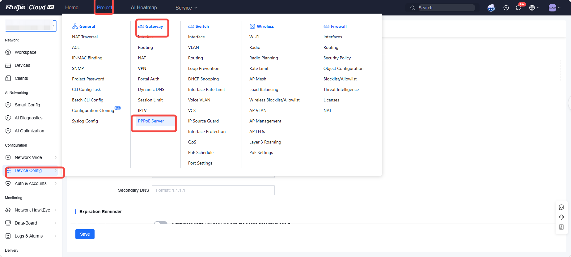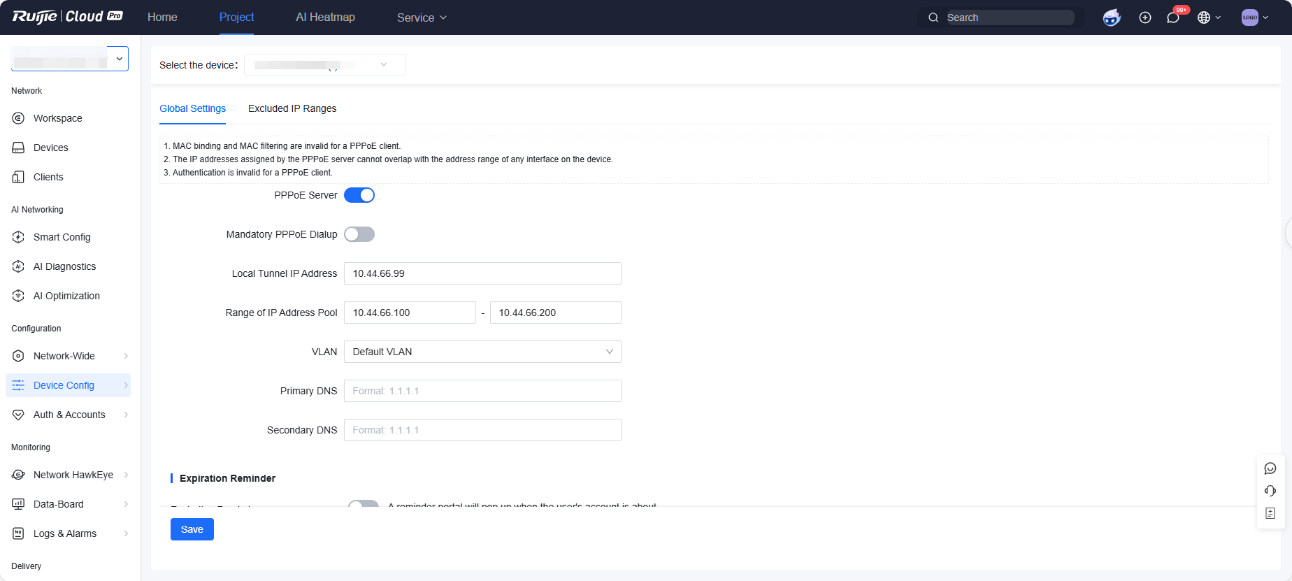 ![]() 3. Set PPPoE Server to Enable and configure PPPoE server parameters. ![]() PPPoE server configuration