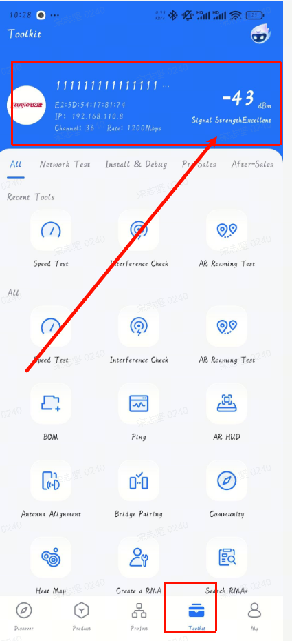 2. Use the Reyee Ruijie app to check the signal strength index (higher is better, -30dbm > -40dbm).
