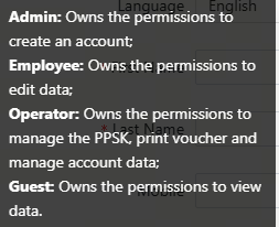 The following are the permission instructions for the four roles of the sub account. The Guest role can only view and cannot modify any data
