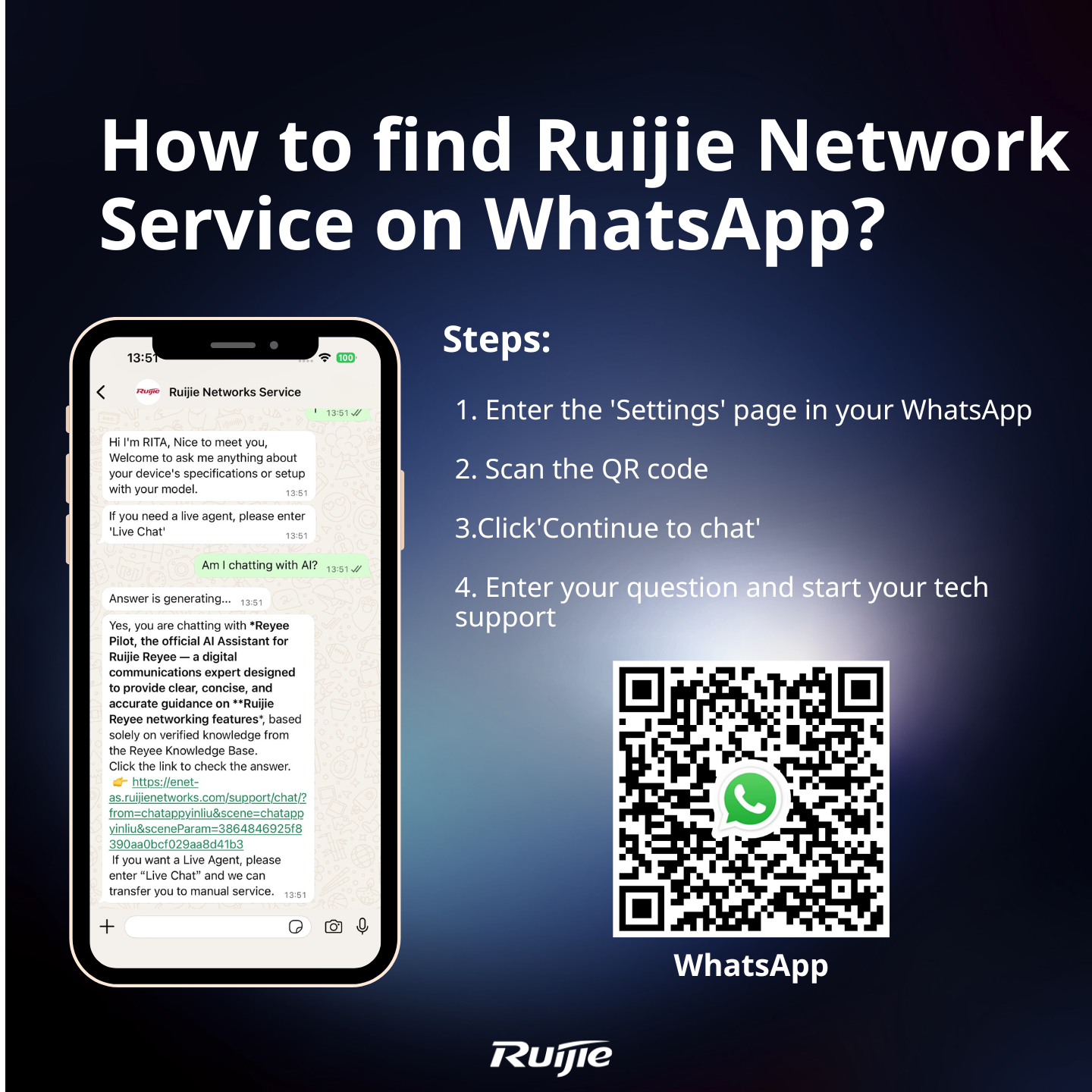 This site contains user submitted content, comments and opinions and is for informational purposes only. Ruijie may provide or recommend responses as a possible solution based on the information provided; every potential issue may involve several factors not detailed in the conversations captured in an electronic forum and Ruijie can therefore provide no guarantee as to the efficacy of any proposed solutions on the community forums. Ruijie disclaims any and all liability for the acts, omissions and conduct of any third parties in connection with or related to your use of the site. All postings and use of the content on this site are subject to the Ruijie Community Terms of Use.