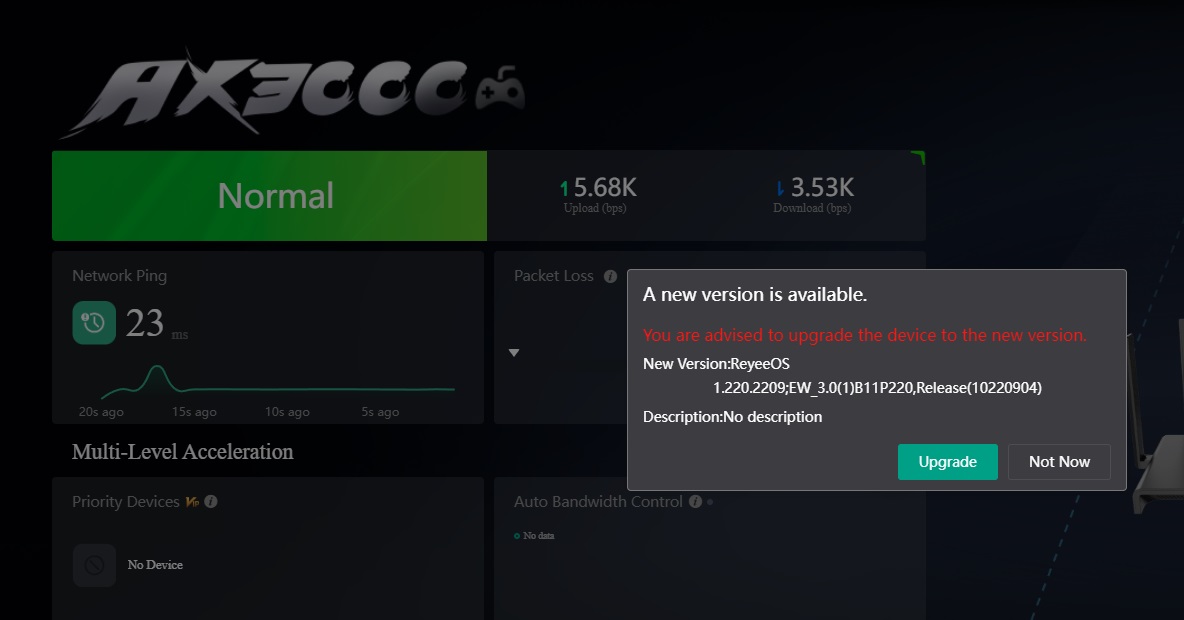 Dear sir I check RG-EW3000GX PRO latest firmware version is ReyeeOS301. May I know whether your router is on cloud? Can you share with me your network to further check? Thank you for your cooperation. Best regards Jenny |