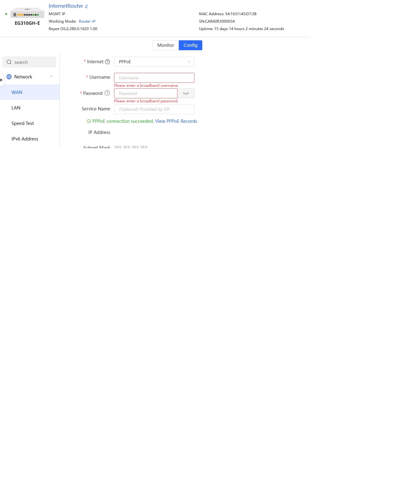 GTAC-Stella replied at 2024-5-16 14:59 Thank you I found PPPoE username and password on Reyee Cloud |