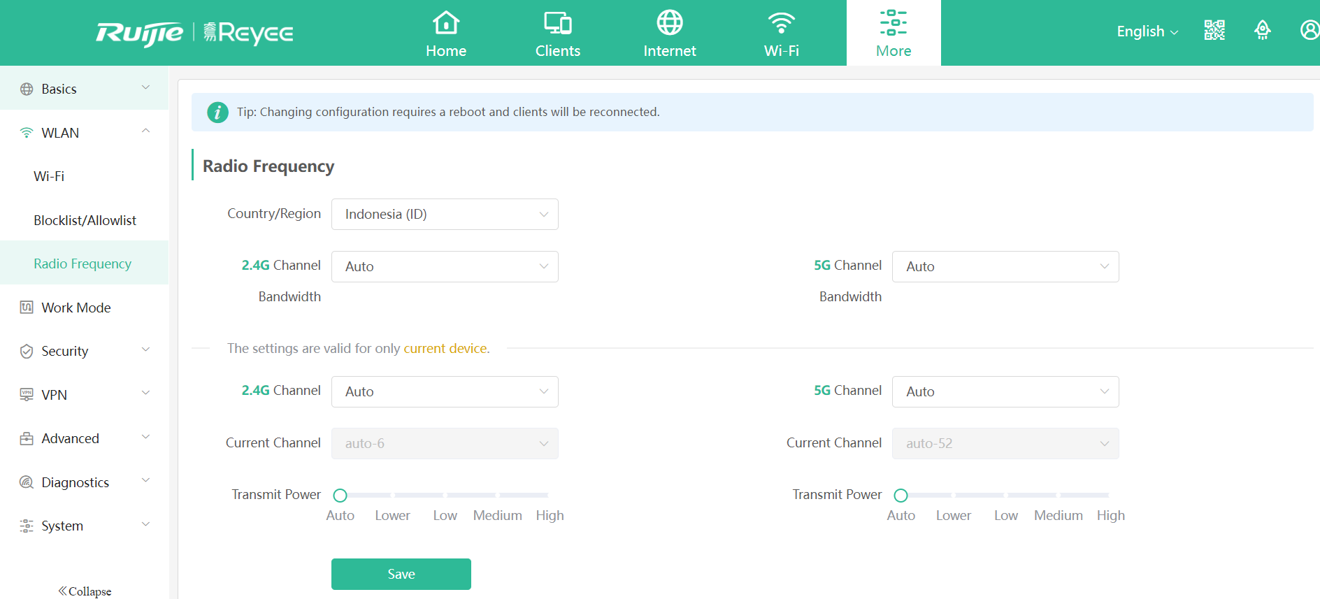 K.M._25 replied at 2024-5-17 18:06 Hi, K.M._25 1. You can try to modify the router power to be appropriate and to avoid the signal interrupt between the routers. The ideal signal strength is -65dbm in router coverage area edge. 2. The adjacent router channels must be non-overlapped channel to avoid same frequency interference and packet loss. For example in non-high-density deployment scenarios, 2.4G channels are recommended to use 3 non-overlapping channels 1, 6, and 11 for planning. If it is a high-density deployment site, it is recommended to use 4 channels 1, 5, 9, and 13 for planning; 5G channels are recommended to use 149, 153, 157, 161, 165, 36, 40, 44, 48, 52, 56, 60, 64, a total of 13 non-overlapping channels are planned. 3. It is client behaviour to choose which router to connect. If the clients can support modifying the roaming sensitivity, you can change to decrease roaming sensitivity via More> WLAN> Radio Frequency.to test again. If the client can not support the setting, we can try to modify the roaming sensivity on both routers to see whether the user still disconnect repeatedly. ![]() Best regards Jenny |