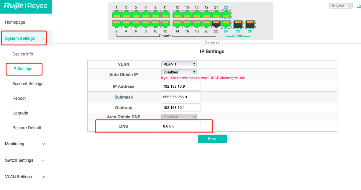 Dear Ken, You may try amend your DNS Server as 8.8.8.8 in the eWeb of the ES switch, it supposed to work. ![]() Regards, Lex |